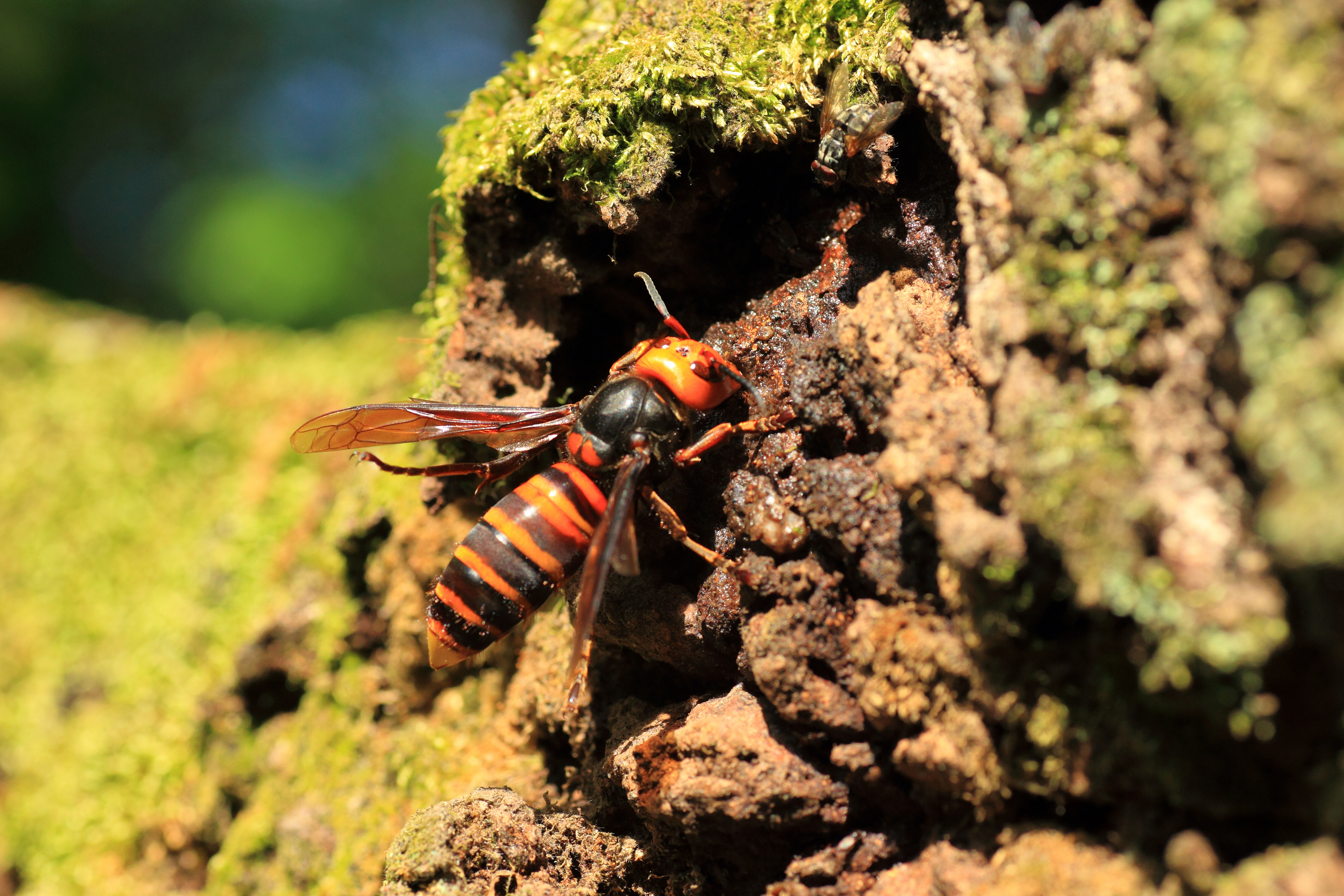 Cicada killers: These are actually wasps more closely related to mud daubers. But one could be mistaken for an Asian hornet because of its sheer size and similar coloring. They occur statewide.
