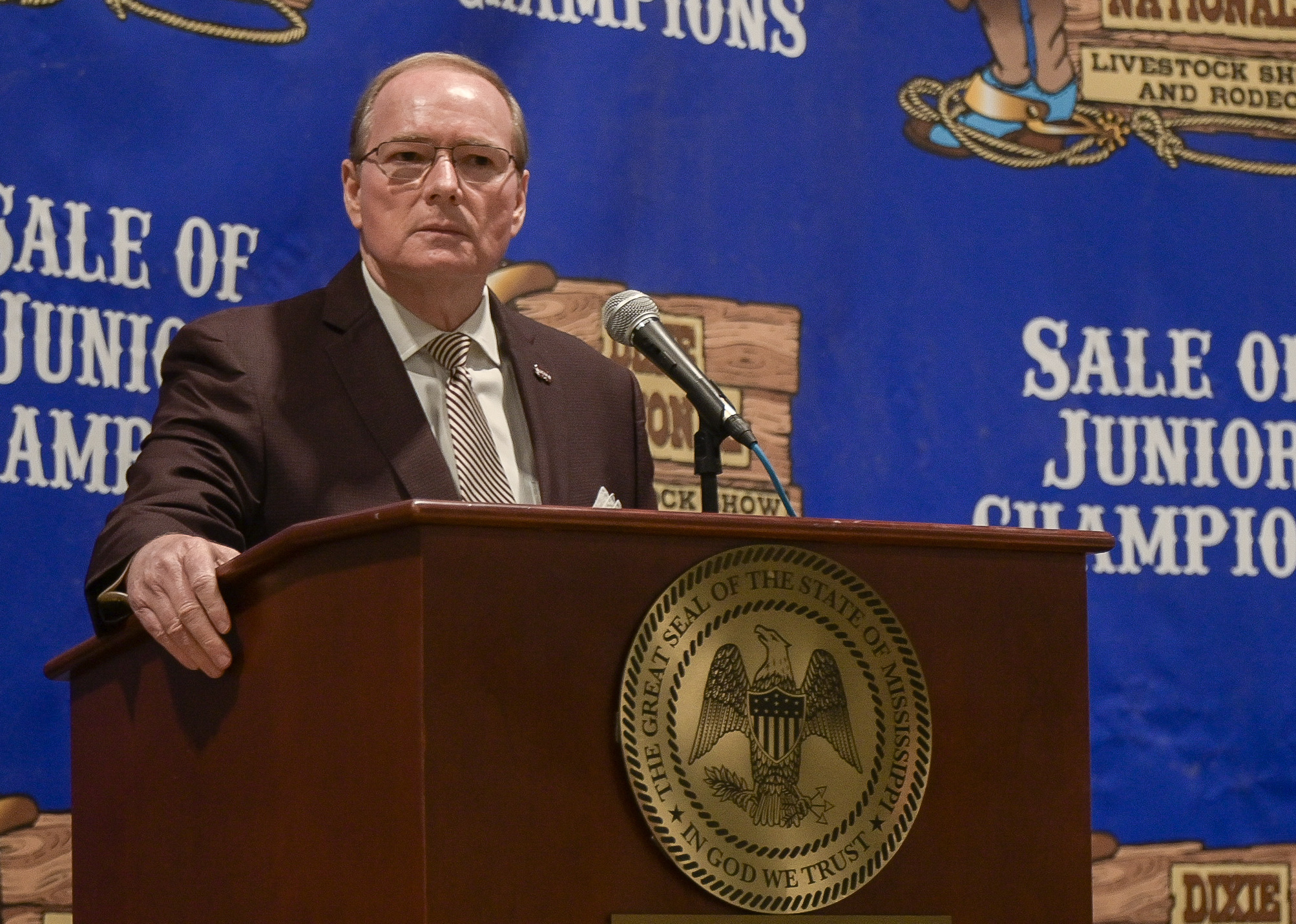 MSU President Mark E. Keenum, featured guest speaker of this year’s sale, lauded the 4-H’ers’ character and commitment to caring for the livestock they exhibited at the round-up and sale.