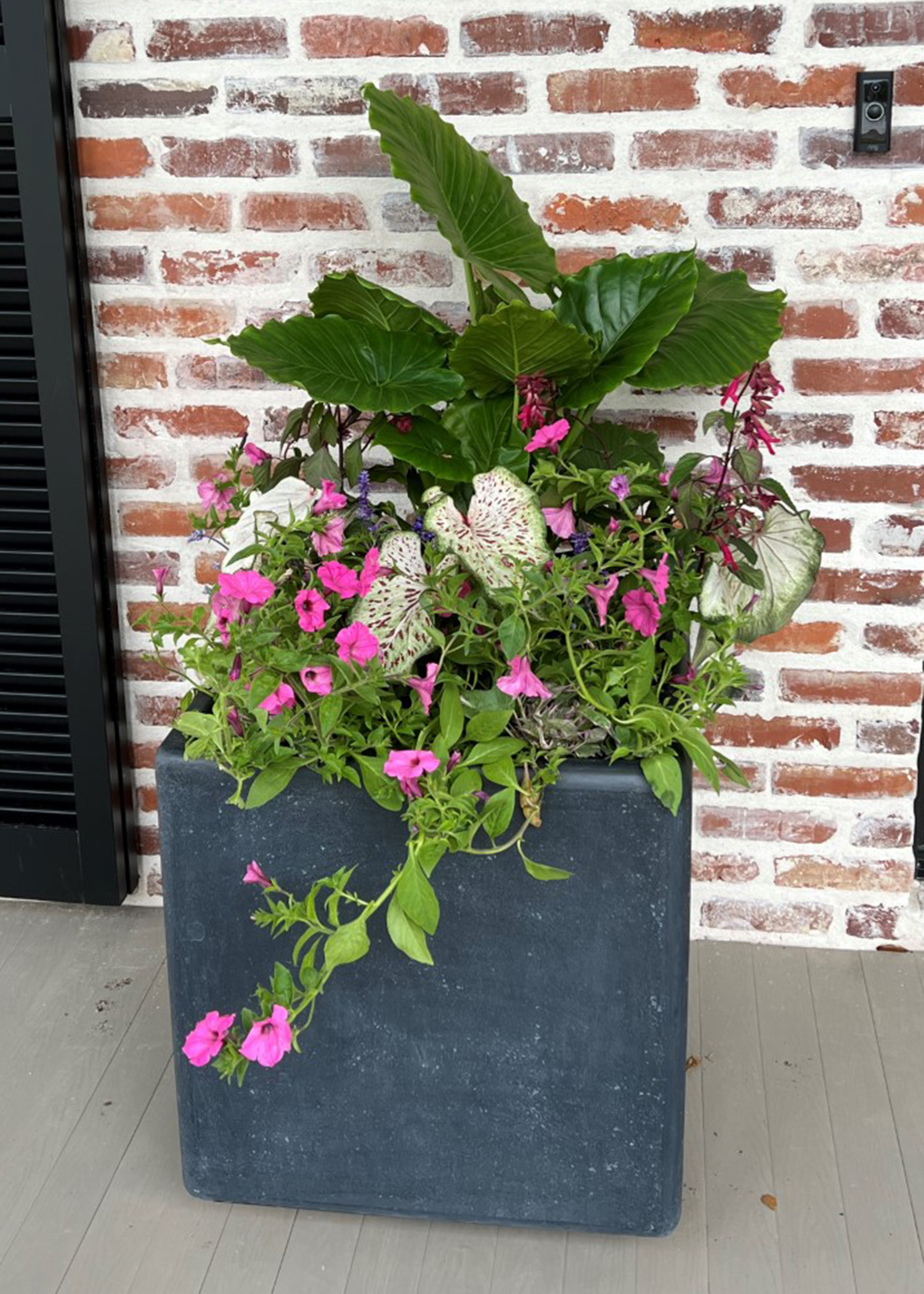 While your containers are empty, take time to clean them and evaluate their drainage. You may need to add additional drainage holes in the bottom of the pot. I always like to put an old towel at the bottom to help filter the water as it drains, which helps prevent stains on the porch and patio.