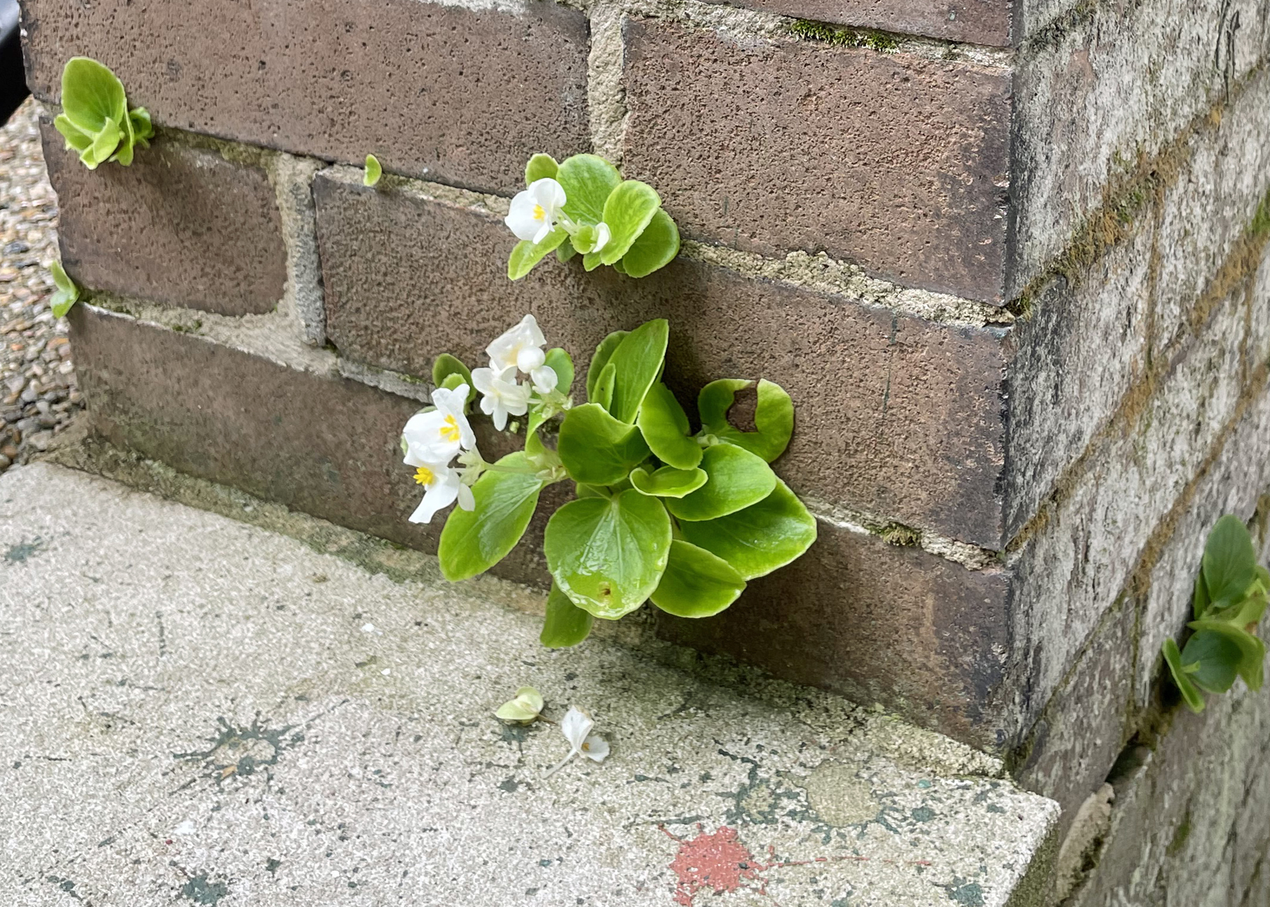 During a recent scouting trip for Southern Gardening, I spotted some begonias growing out of cracks in a concrete and brick stairway. The previous year, begonias grew in a container on the stairway, and the seeds fell into cracks in the bricks and concrete.
