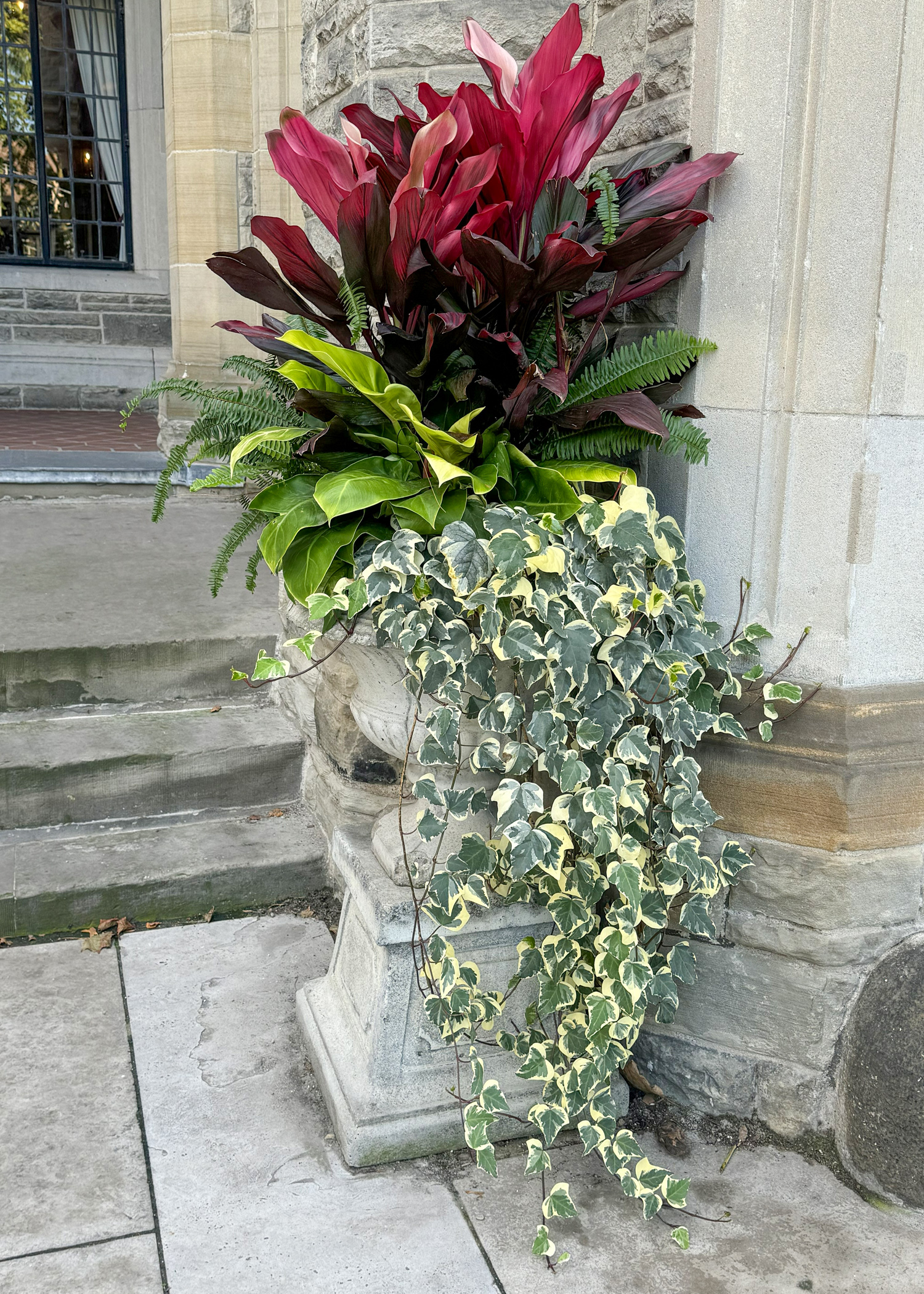 To add texture and greenery, I mix in trailing plants such as variegated ivy, jasmine or asparagus fern. Sometimes I will use small shrubs like juniper or ligustrum for structure and height. Even edible plants like ornamental lettuce or Swiss chard can add unexpected charm.