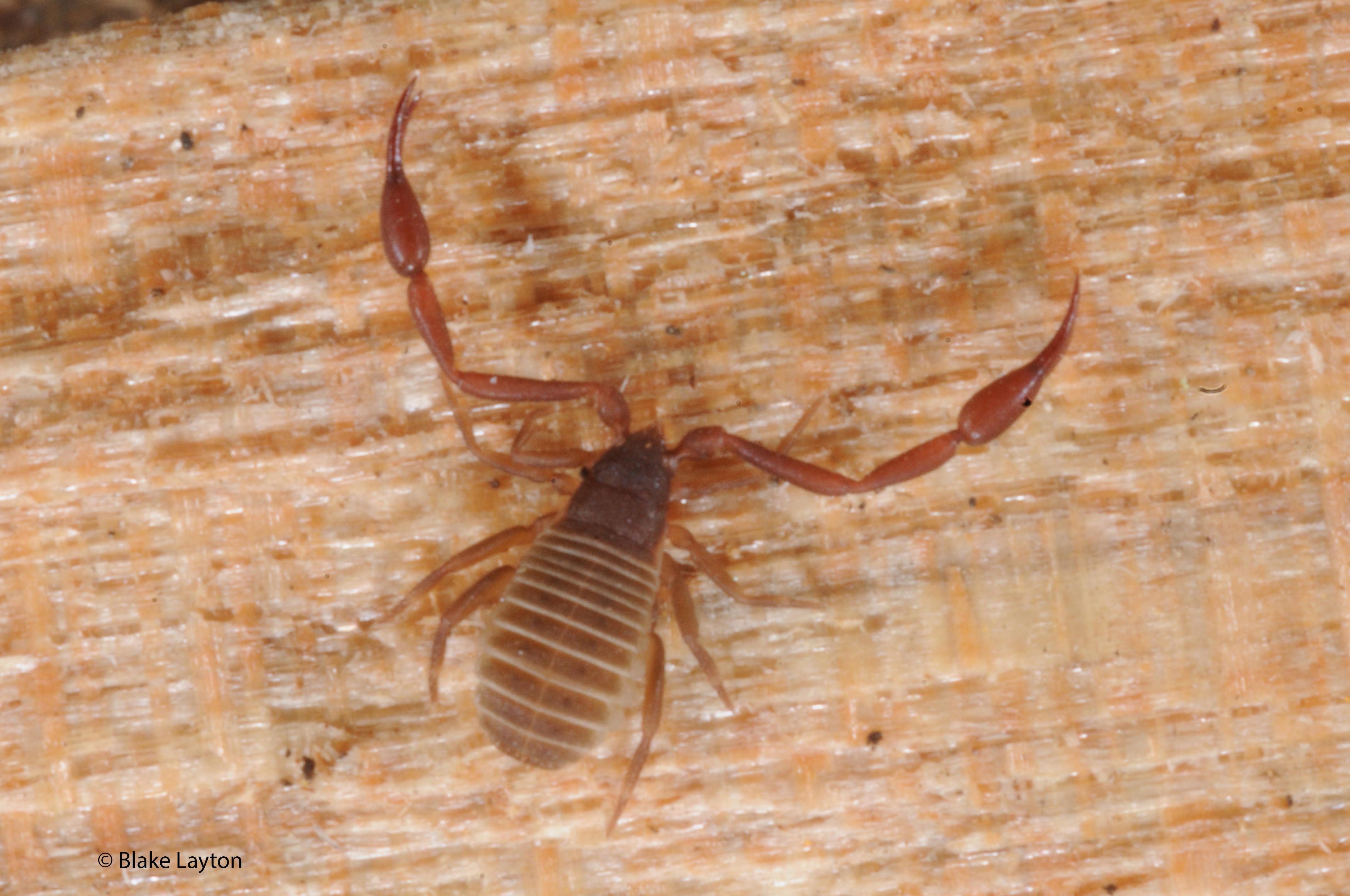 “My firewood is infested with baby scorpions! What should I do?” On rare occasions homeowners will become alarmed when they find what appear to be tiny scorpions in the house. Often these are in firewood that has been moved in preparation for the first cold snap, but pseudoscorpions also occur in other situations.