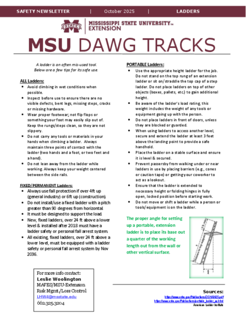 - Do not carry any tools or materials in your hands when climbing a ladder. Always maintain three points of contact with the ladder (two hands and a foot, or two feet and a hand).