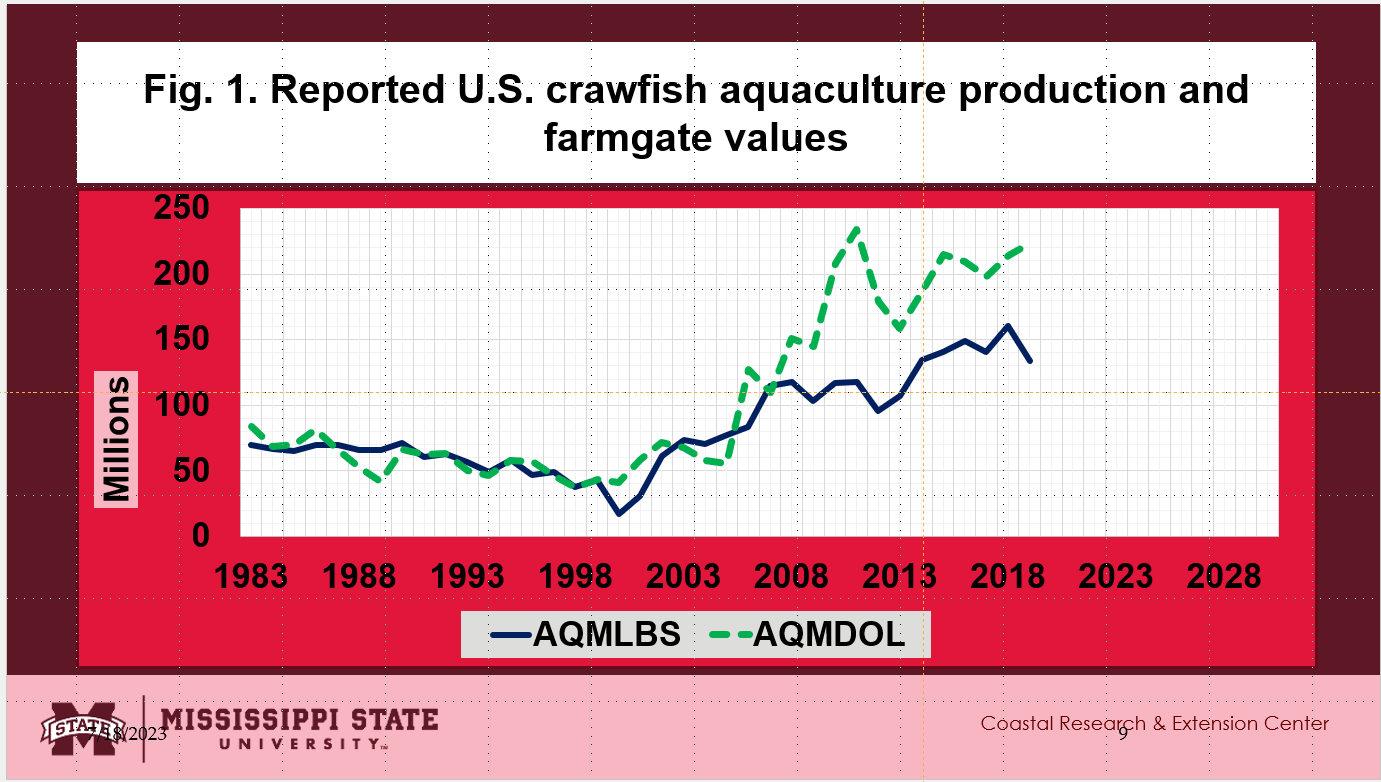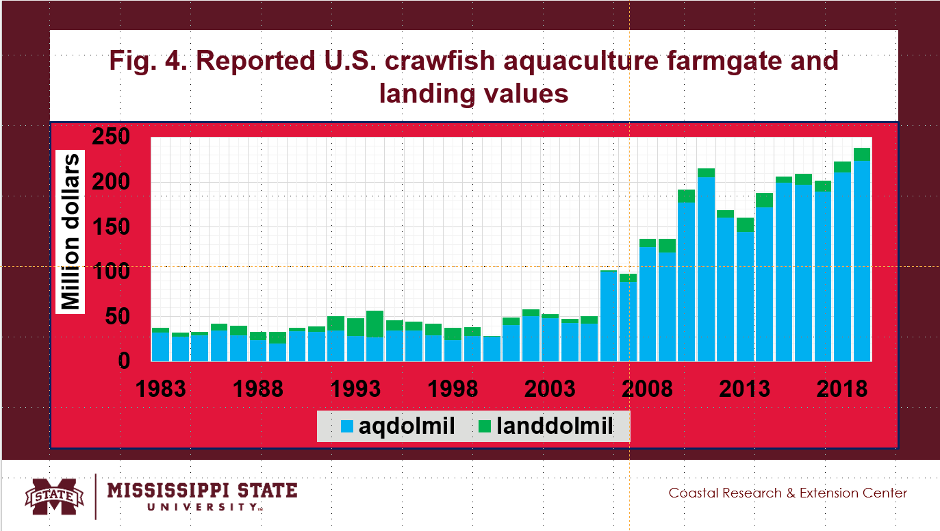 - The reported U.S. crawfish aquaculture farmgate and landing values are shown in Fig. 4.