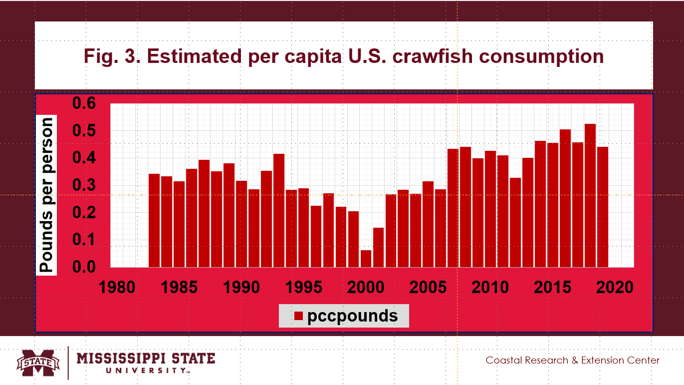 - Annual per capita U.S. crawfish consumption since 1983 are shown in Fig. 3.