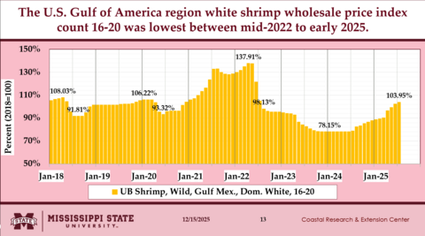 - Mississippi MarketMaker. Vol. 13, No. 12 / Direct Impacts of Disaster and Economic Events on United States White Shrimp Fisheries. December 13, 2023