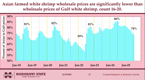 - This newsletter shows a proposed methodology in assessing the impacts of cheap imported shrimp on the dockside prices of shrimp harvested from the U.S. Gulf of America states (Penaeid species only) from January 2018 to July 2025.