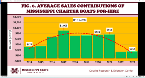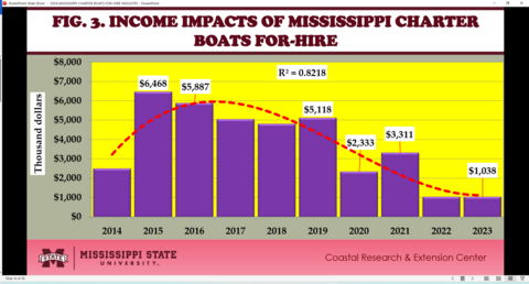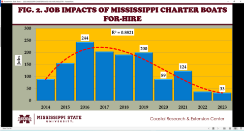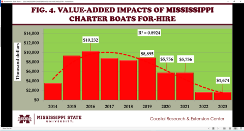 - Estimates of the economic impacts of the Mississippi charter boats-for-hire industry (MS-CBFH) were compiled from 2014 to 2023 on the NOAA Fisheries website, including sales, jobs, income, and value-added impacts.