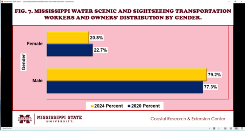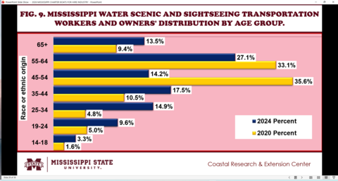 - Socioeconomic characteristics of the Mississippi charter boats for-hire industry (MS-CBFH) were compiled in 2020 and 2024 from the Lightcast website, including gender, race, and age.