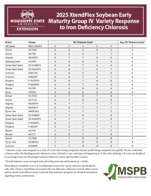 2025 XtendFlex Soybean Early Maturity Group IV Variety Response to Iron Deficiency Chlorosis