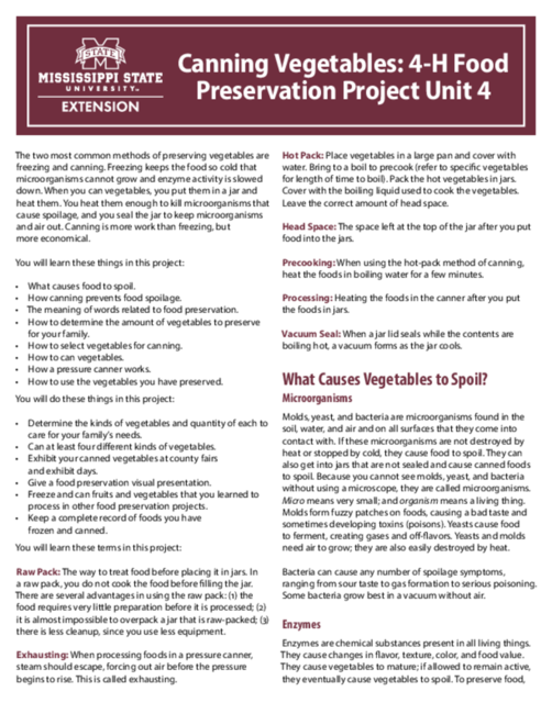 Canning Vegetables: 4-H Food Preservation Project Unit 4
