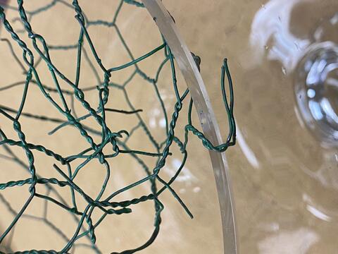 This mechanic preceded floral foam in floral design history. It is added in layers or stuffed into a container. It is important to fold it so that stems penetrate at least two layers of the wire, with an approximate separation of about 1 inch between levels. Multiple layers of the wire control stem placements.