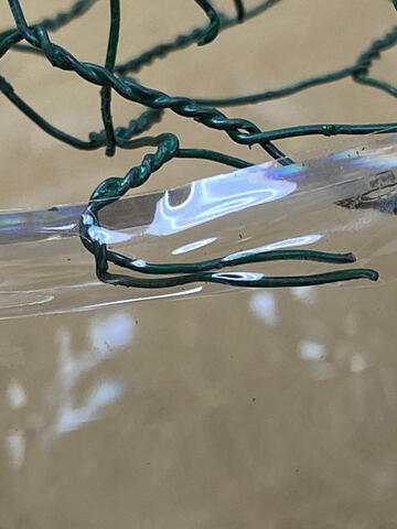 Cover the loose wires along the edge of the vase with clear, waterproof tape, stretching the tape taut. Use a continuous length of the tape. You may need to make two to four passes around the container to keep the mechanic secure.