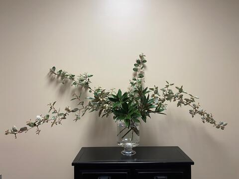 Next, add long stems of Elaeagnus foliage to the container. These stems help to establish the design’s width.