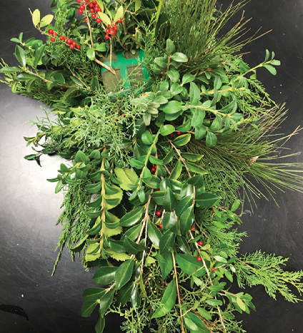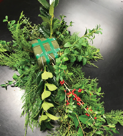 This publication provides detailed instructions on how to make an evergreen swag—a cluster of mixed greenery that can be accented with ribbon, berries, pine cones, and pods. It is a classic, just like a wreath or a garland, and it is easy to adapt the design to other types of foliage and seasons once you master the basics. Designs like this can retail for $50 to $100 and are well worth the retail value because of their rugged beauty.