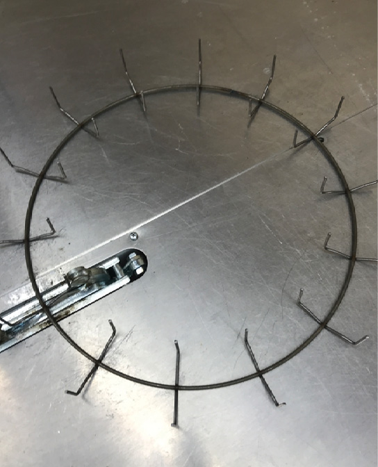 Willow stem clusters are held in place and formed into a wreath shape using a wire, clamp wreath form, and associated clamp wreath machine. The wreath frame has wire prongs that receive loose bunches of plant material. The machine uses force to clamp the prongs around the bunch, holding it tightly in place. The clamping action is triggered by a foot pedal, leaving hands free to hold materials in place. Having the clamp mechanism permanently attached to a table is the best practice for commercial producers and a good choice for producers entering the wreathmaking marketplace.
