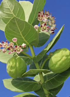 Egg-shaped pods are lime green and covered in hairs. Unique in floral designs. Stems exude milky sap that can irritate skin.