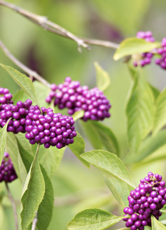 Give it lots of room and sun to get the best return. Vivid violet, milky white, or pink berries are clustered on long stems. Remove foliage before using in arrangements because the foliage will decline faster than the berried branches and hide the unique line.