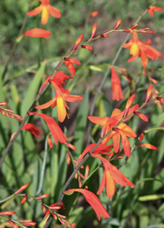 This fiery-colored cousin of gladiolus grows from corms that freely multiply. Produces graceful cut flowers that, if left on the plant, produce bead-shaped, bronze fruits. Stunning in summer and fall arrangements.
