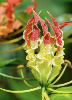 Some floral materials stand out from the others due to their unusual, distinctive patterns—these are form materials. Dutch irises, gloriosa lilies, and pitcher plants may be considered form materials.