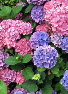 Established hydrangea plants can produce pink, reddish, white, or blue flowers, or combinations of these colors. Leave on the plant until flowers begin to take on a papery appearance, then harvest and continue to air dry. For fresh-cut use, a commercial citric acid dip helps keep flowers from collapsing.