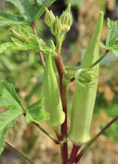 Fresh or dried okra on the stem is terrific in floral designs. The individual dried pods are great for a rustic touch in designs, including tabletop arrangements, wreaths, and many more.