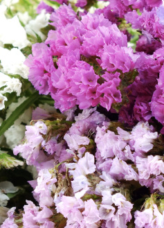 Statice grows best in full sun and in well-drained soil. Harvest stems before or just when small, white flowers open within the colorful, papery bracts. Bract colors include yellow, raspberry, and royal purple. To dry, gather five to ten stems with rubber bands and hang upside down in a warm space with plenty of air circulation, out of direct sunlight.