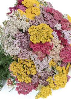 Versatile cut flower, fresh or dried, on strong stems. Cottage yarrow is available in a wide range of hues, including crimson and pastels like peach and pink. It is best used as a filler in floral bouquets and arrangements.