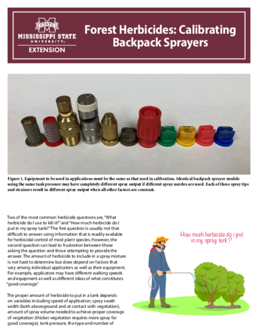 Adapted for use in Mississippi by Brady Self, PhD, Extension Professor, Forestry, from Backpack Sprayer Calibration for Woodland Application, Penn State Extension Forest Science Fact Sheet EE0184.
