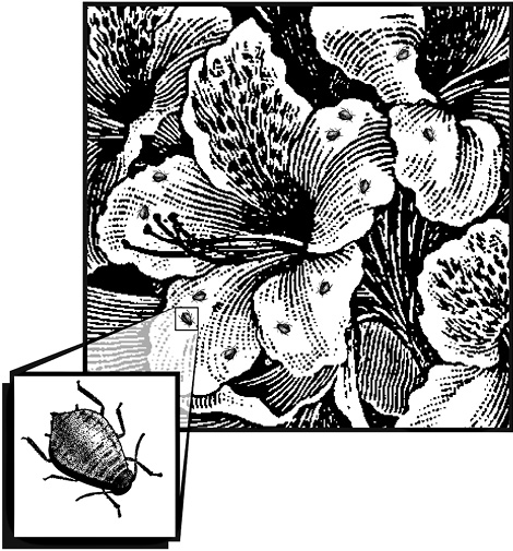 Avoid planting azaleas in full sun as this increase susceptibility to azalea lacebugs. |