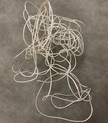 A florist’s composite is a single flower made from the petals of many flowers. For a version made from gladiolus florets, see MSU Extension Publication 3736 Gladiolus Composite Flower (Glamellia) for the Professional Florist. Begin this project with a roll of #12-gauge aluminum wire, found in wholesale florist supply departments and online. It is soft, malleable, and available in many different colors. We untied the roll and wadded it up into a loose configuration.