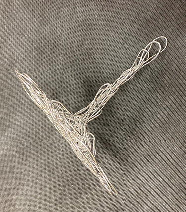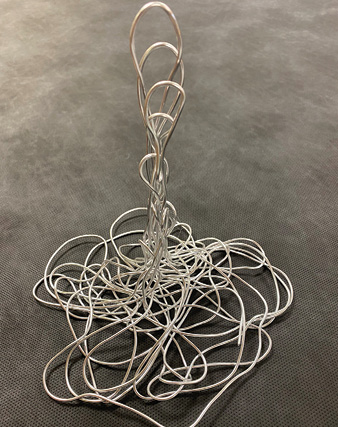 Next, form the loose configuration into a handle and platform. To avoid scratching the recipient, tightly curl the ends of the wire and work them into the network of the platform wire.
