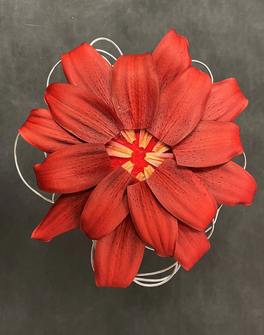 Introduced in 1992, L.A. hybrids are a cross between longiflorum lilies (trumpet-shaped blooms) and Asiatic hybrids (warm colors, upright-facing blooms). L.A. hybrid lilies provide exceptional flowers for floral designs. Classified by some as mass flowers and others as distinctive, we feel they can be used in both categories due to their pattern and form. For this publication, we grew, harvested, and designed the L.A. lily cultivated variety ‘Armandale’, which has spicy, red-orange flowers.