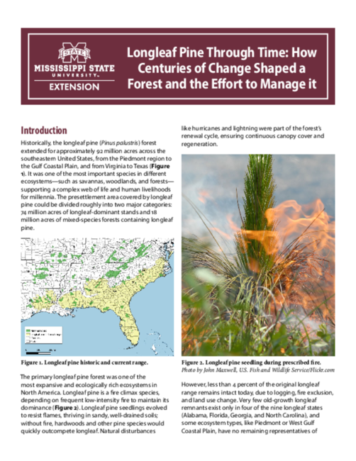 This publication aims to track the origins and decline of the longleaf pine ecosystem from a historical and social point of view. By understanding the ecological, cultural, and industrial factors that shaped this landscape, landowners, natural resource professionals, and longleaf pine enthusiasts can make more informed decisions about restoring and sustaining longleaf pine habitats today.