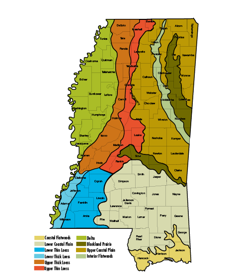 Mississippi is blessed with some of the most productive and diverse forestland found in the United States. These lands range from the bluff hills lining the east side of the Delta region, to stream and river bottoms and floodplains, to clay hill uplands. Mississippi has about 19 million forested acres, approximately 66 percent of the state’s total acreage. These forests play a very important role in the ecology and economy of Mississippi.