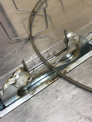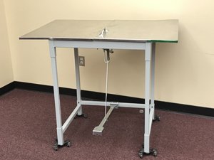 The wreath frame has wire prongs that hold loose bunches of plant material. The machine uses force to clamp the prongs around a cluster of about four to six stems, holding them tightly in place. The clamping action is operated by a foot pedal, leaving your hands free to hold materials in place. Having the clamp mechanism permanently attached to a table is a best practice for commercial producers and a good choice for producers entering the wreath-making marketplace.