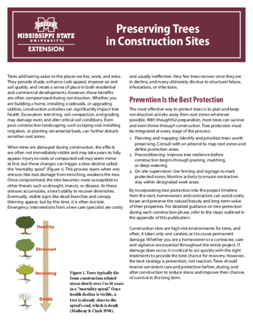 Revised by Josh Granger, PhD, Associate Professor, and Brady Self, PhD, Extension Professor, Forestry, from a previous version by Stephen Dicke, PhD, Emeritus Extension Professor, Forestry. Original publication funded by an Urban and Community Forestry Grant from the Mississippi Forestry Commission in cooperation with the USDA Forest Service and the Southern Group of State Foresters.