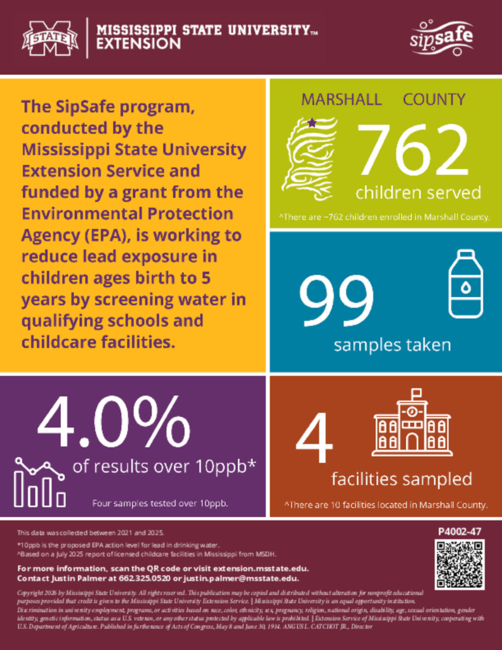The SipSafe program, conducted by the Mississippi State University Extension Service and funded by a grant from the Environmental Protection Agency (EPA), is working to reduce lead exposure in children ages birth to 5 years by screening water in qualifying schools and childcare facilities.