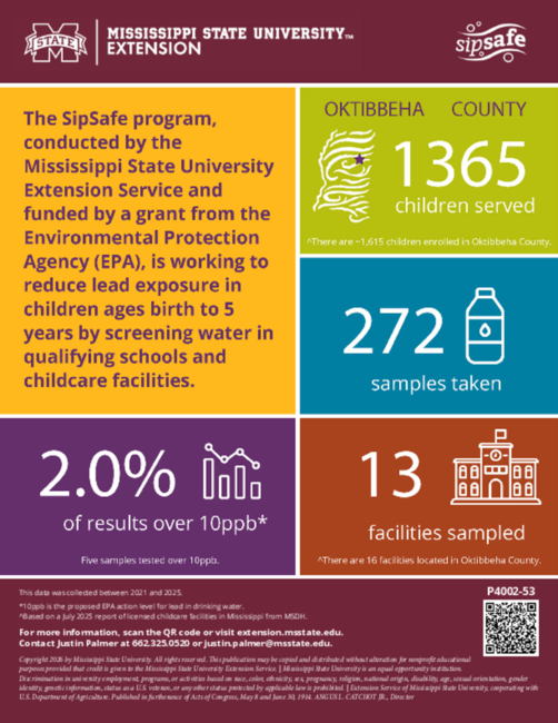 The SipSafe program, conducted by the Mississippi State University Extension Service and funded by a grant from the Environmental Protection Agency (EPA), is working to reduce lead exposure in children ages birth to 5 years by screening water in qualifying schools and childcare facilities.
