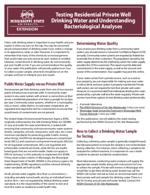 - Mississippi State University Extension’s Mississippi Well Owner Network (1-662-325-1788)