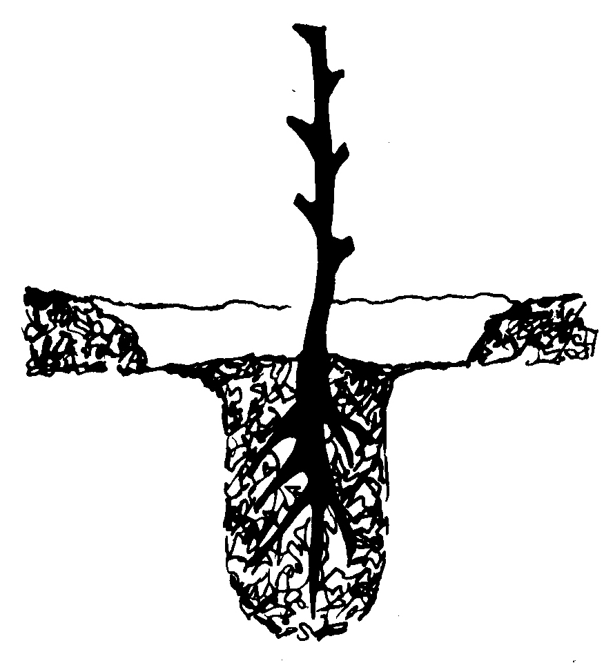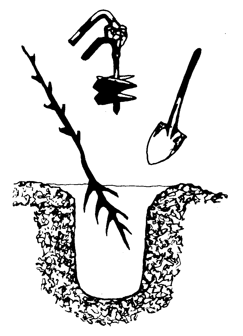 Dig a hole just wide enough and deep enough for the tree’s root system without bending any of the roots. A power-driven auger, 12–18 inches in diameter, is an effective implement for digging tree-planting holes, especially when planning a large orchard.