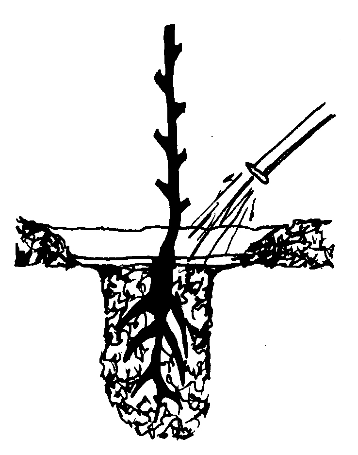 Ideally, the trees should be transplanted as soon as possible after arrival. If weather conditions make this impossible, “heel in” the trees by covering their roots with moist soil or sawdust until planting.