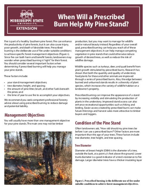- Prescribed Burning in Southern Pine Forests, (MSU Extension Publication 2283)