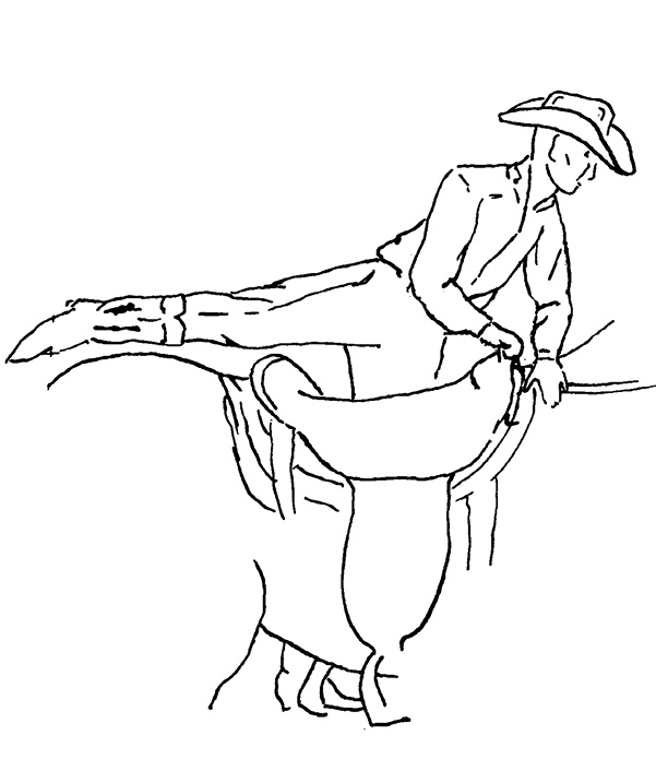 When properly executed, mounting and dismounting are a series of rhythmic movements. The entire operation is so smooth and graceful that it is difficult to tell when one stage ends and the next begins. If you have handled your horse properly it shouldn’t buck.