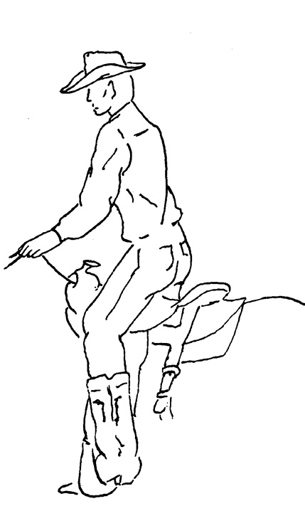 Your center of gravity is directly over the horse’s center of gravity, and, as a result, you present the lightest possible load. Once you have learned a good seat, you need a minimum use of aids to get an immediate response from your horse at any gait. A balanced seat, assisted by the flexibility of your waist and back, gives you a secure position from which you can’t easily be dislodged, even by unexpected movements of your horse. Because of the practical work of western stock horses and the speed that is frequently required of them, a strong, firm seat and good balance are especially important.